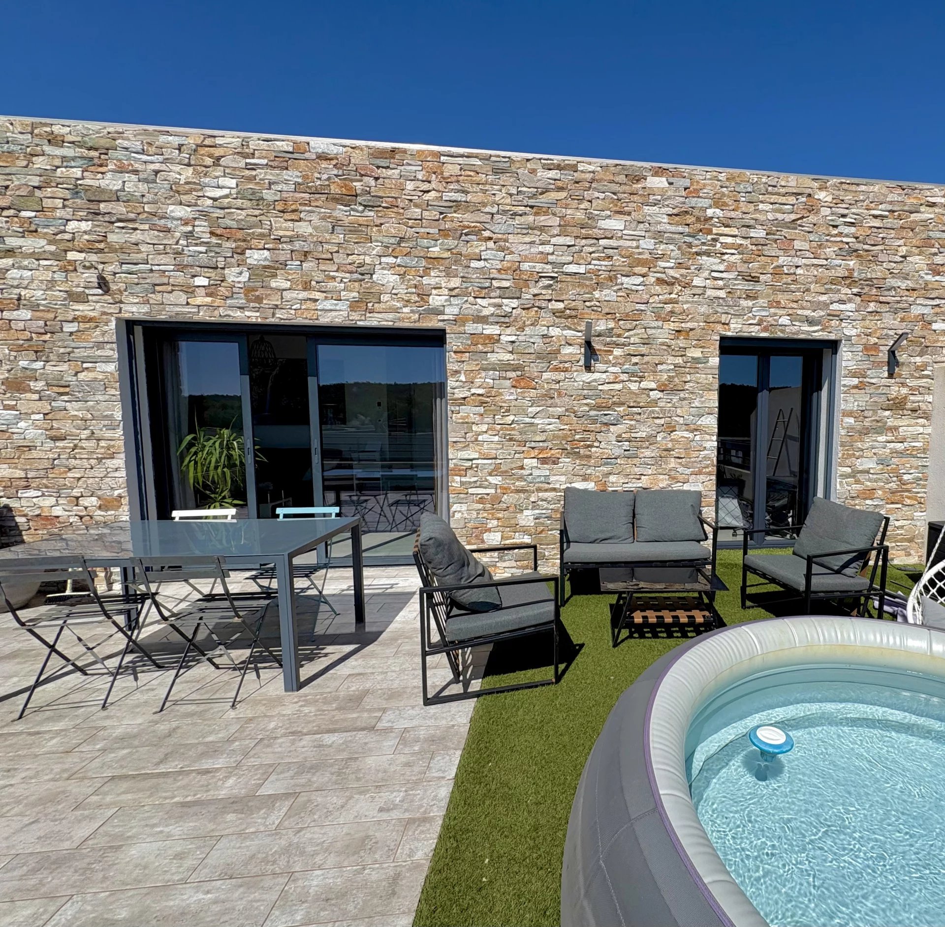 Terrasse avec jacuzzi encastré